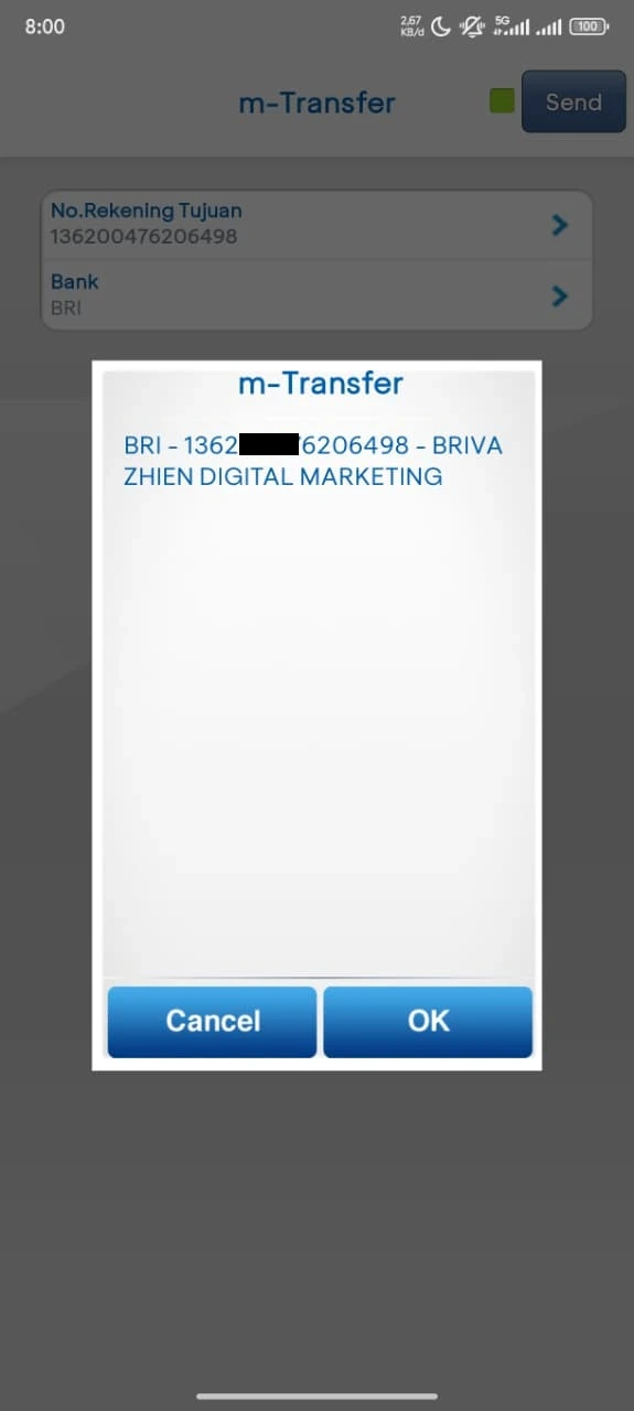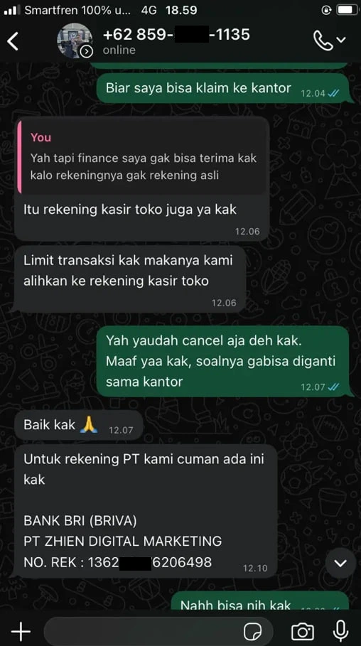 - Nama Rekening Penipuan: BRIVA ZHIEN DIGITAL MARKETING