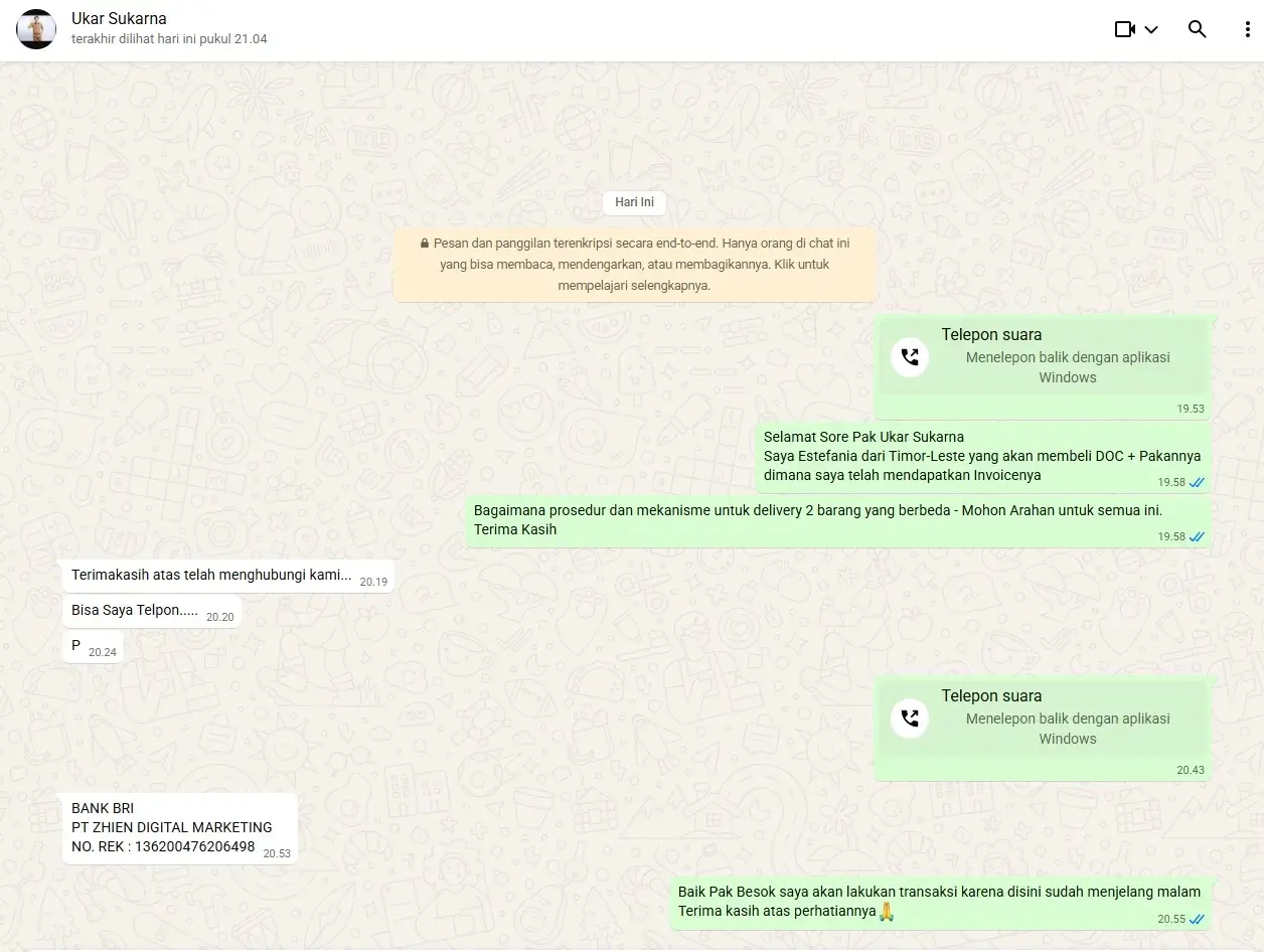 Kami juga menyampaikan apresiasi khusus kepada Bank BRI karena telah berhasil menonaktifkan rekening tersebut, meskipun prosesnya memerlukan waktu. Terima kasih turut disampaikan kepada Cekrekening.id dan Kredibel.com atas partisipasi aktif mereka dalam mengantisipasi dan memperingatkan publik mengenai rekening palsu ini. Dengan segala hormat, kami dari ZHIEN Digital Marketing mengucapkan terima kasih banyak atas kontribusi yang telah Anda berikan dalam menjaga keamanan transaksi.